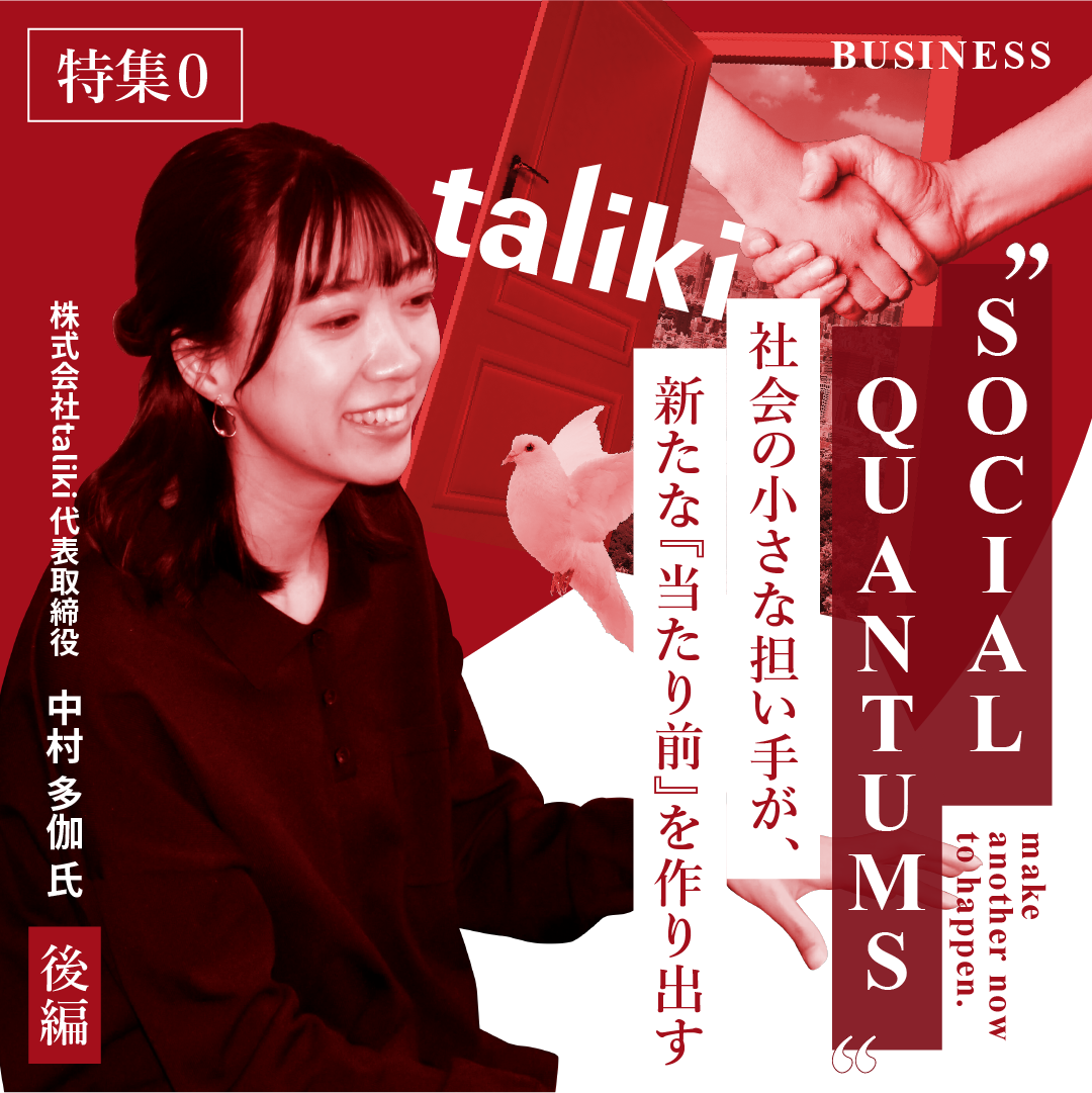 そこには、社会に対する問いを解決の力に変えていこうとする起業家へ、精一杯寄り添いたいというtaliki、そして中村氏の強い想いが反映されている。