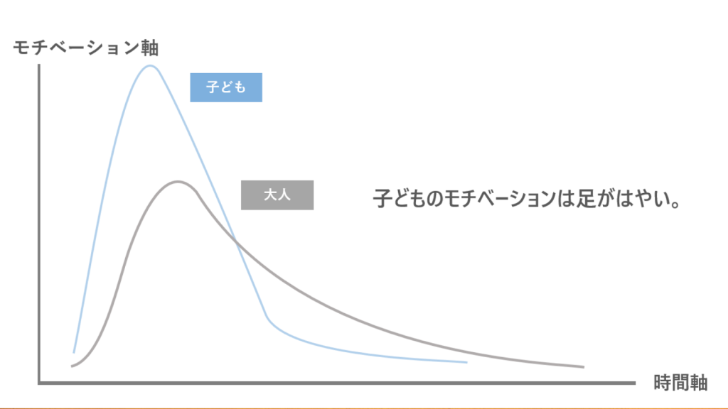 子どもと大人のモチベーション維持力の差異(出典:Edutainment Education)